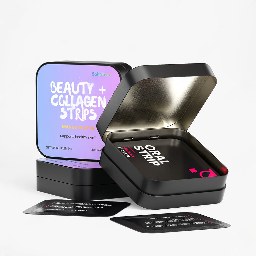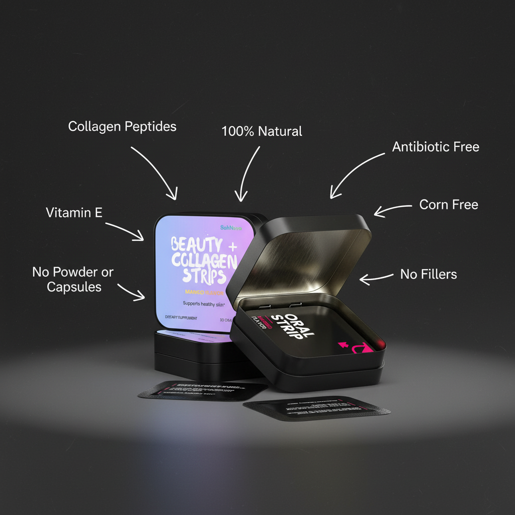 Experience effortless beauty and wellness with our unique dissolvable strips, combining Collagen Peptides and Vitamin E for noticeable results and greater convenience than any competitor's product.
